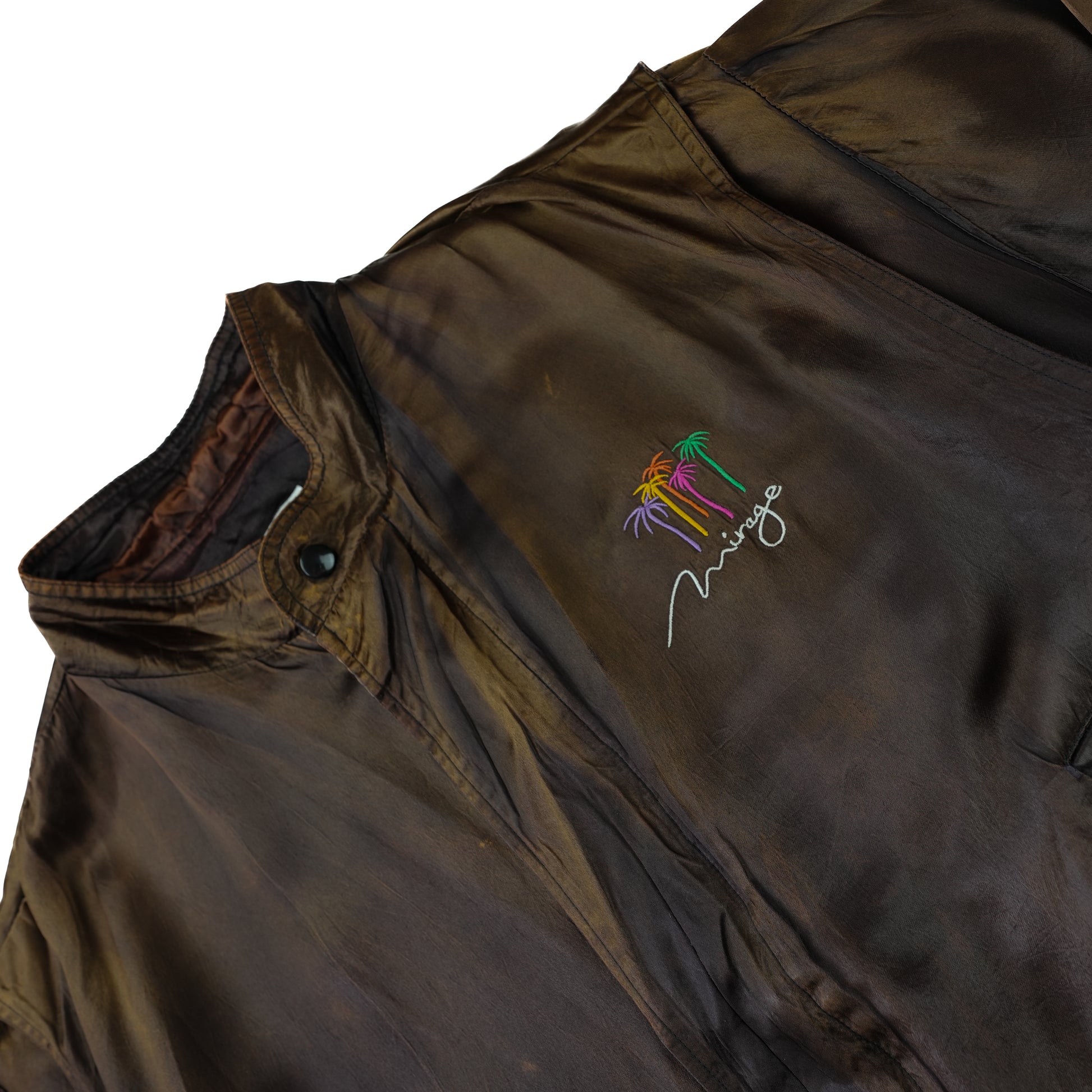 80s LAS VEGAS MIRAGE BOMBER JACKET IN BROWN SATIN