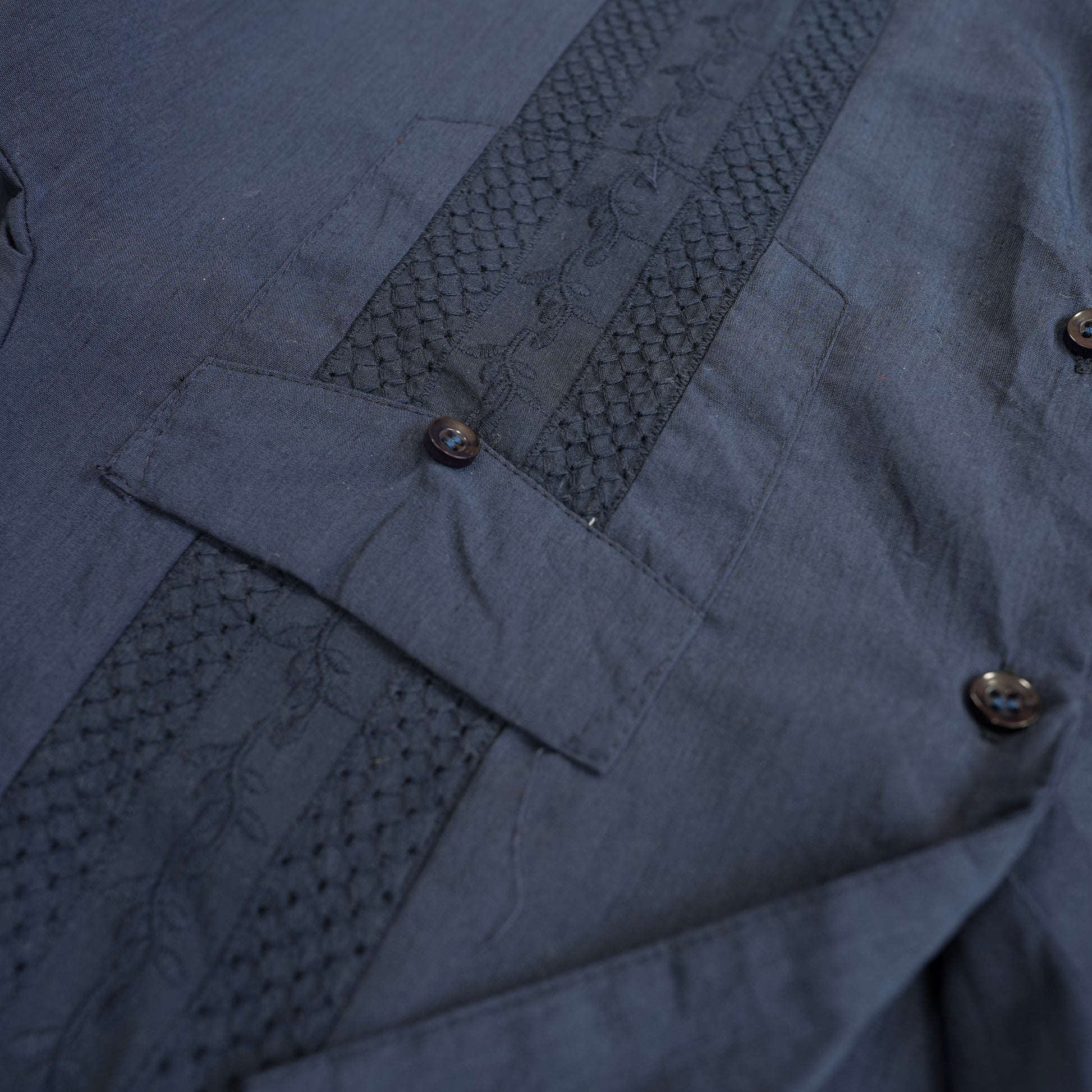 NAVY HAVANA CUBAN COLLAR SHIRT S